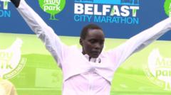 Kenya’s Beatrice Jepkemei clinches victory in a women’s record time at the Belfast Marathon as compatriot Mathew Kiplimo wins the men’s event.