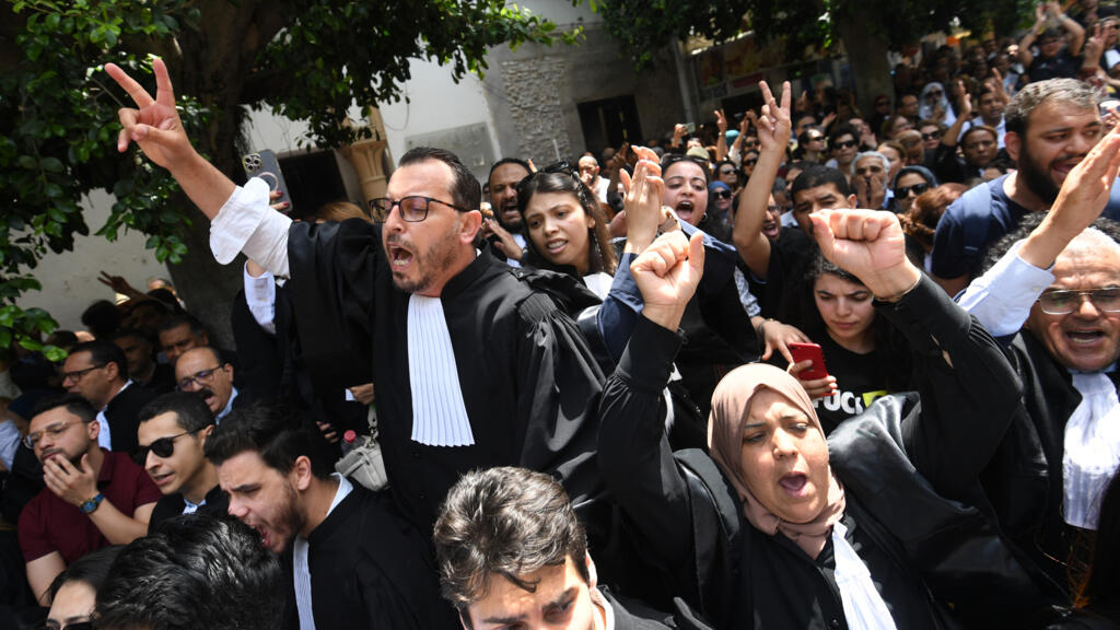 Hundreds of lawyers, activists and others demonstrated in Tunis on Thursday over the arrest of two lawyers in police raids on the national bar association, AFP journalists said.